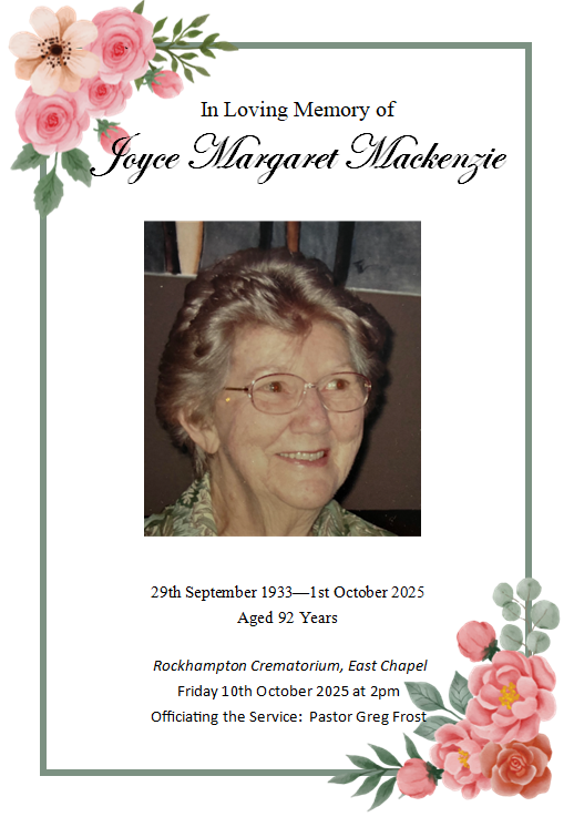 Late of Rockhampton. Formerly of Mackay. Passed away peacefully at Rockhampton Hospital on Monday 26th February 2024. Aged 83 years.